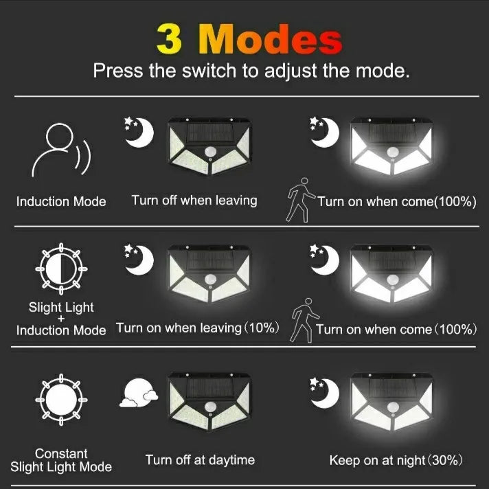 Wireless Solar Motion Sensor Wall Light 270° 100 LED” - Waterproof