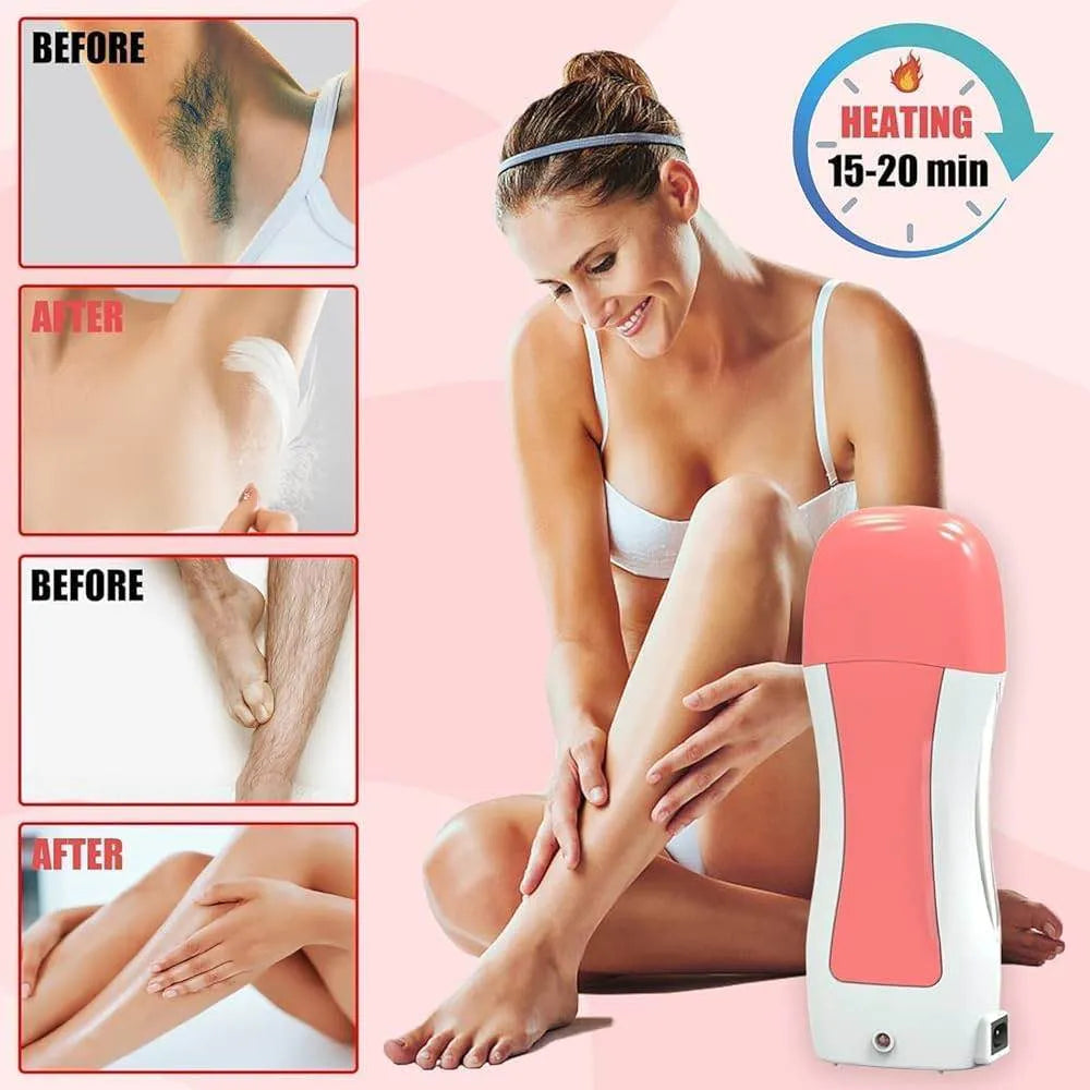 3-in-1 Depilatory Wax Heater Kit – Roll-On Wax Refill & Strips for Hair Removal