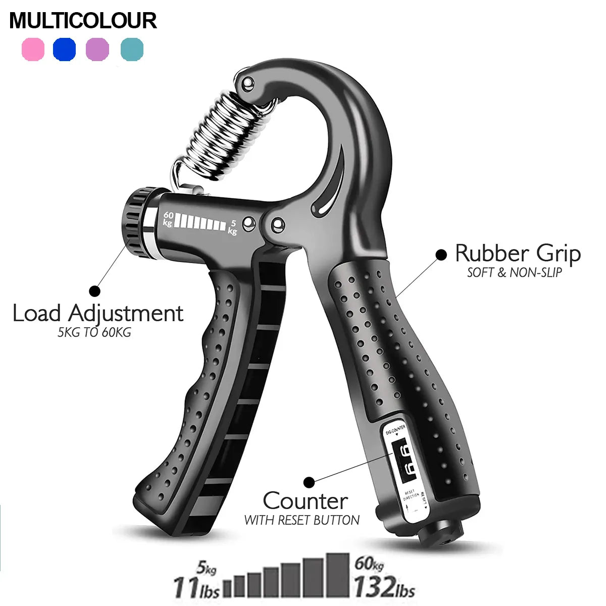 Adjustable Resistance Hand Gripper with Counter – Finger Strength Trainer for Men Women ( Random Color )